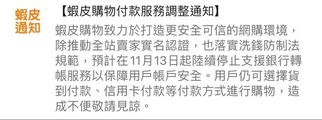 → epiphyte: 所以關閉了銀行轉帳後 蝦皮大概也沒轍 124.218.95.153 10/26 20:46