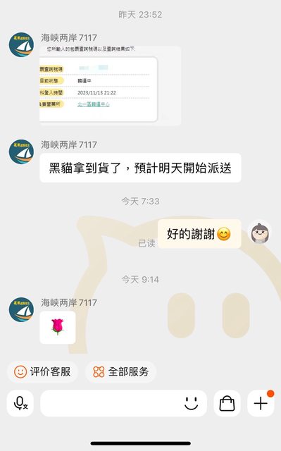 發回台灣有給黑貓單號跟包裝好的照片