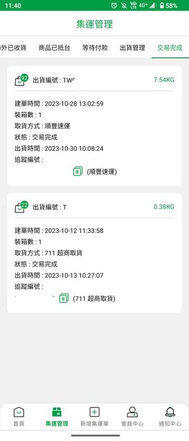 這是集運幫的App介面,目前使用四次。