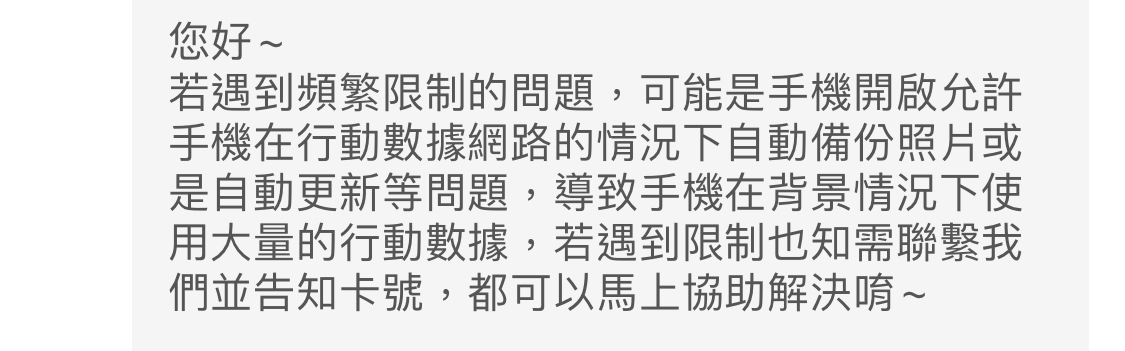 推 hvock: 看你用的不像吃到飽耶,像是定量降速,還 39.14.0.197 11/20 08:46
