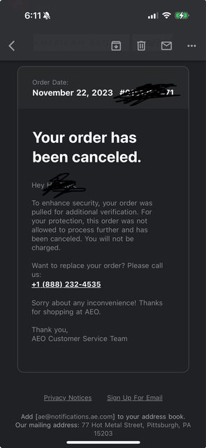 結果半天後訂單被取消了