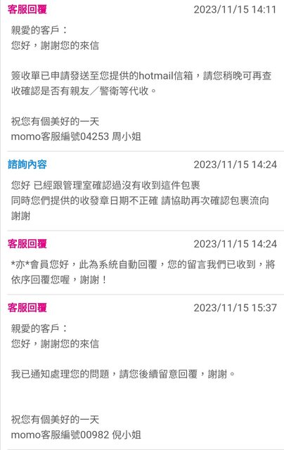 → WarmWen: 你們包裹有人簽收嗎?請物流出示簽收資118.161.84.74 11/28 23:36