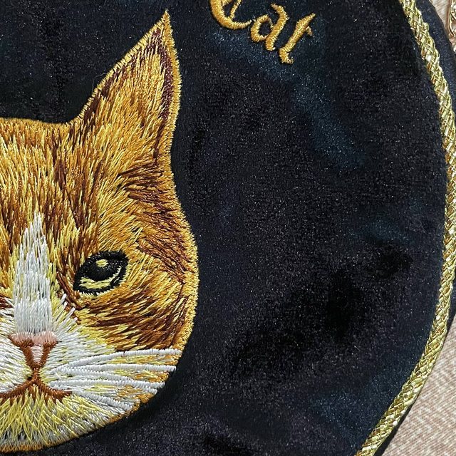 貓頭刺繡細節,包包本人絨布材質