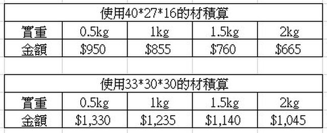 (dcard看到有人6.5kg被收材積19.5kg,共4000多元...)