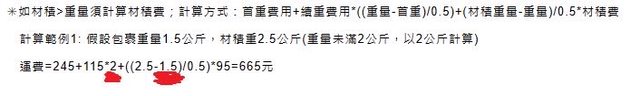 ②以我包裹材積計算,實重2.5kg金額<2.22kg金額,價差$95元