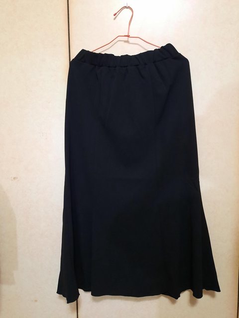 黑色魚尾長裙(沒有口袋)。雖然官方說是直筒裙,但其實在裙襬有些微的魚尾設計,擺動起