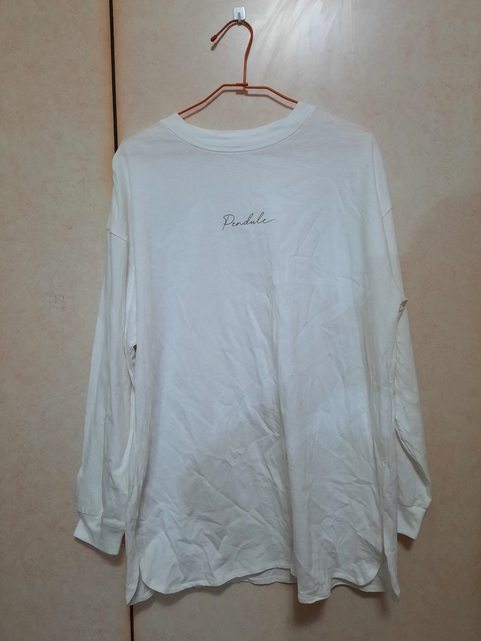 普通的棉質文字上衣,材質算親膚&偏軟,很適合當睡衣穿。照片中是洗過未燙所以皺皺的