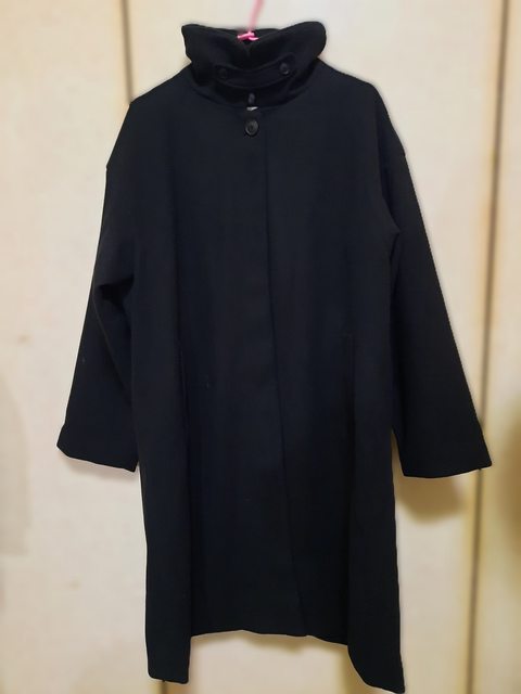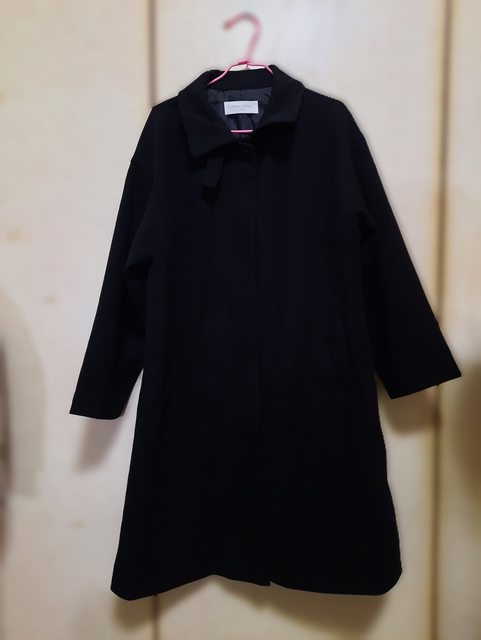 兩種領子穿搭的黑色長大衣。小個子(150)如我一直在物色大衣,看到官方模特兒穿起來長