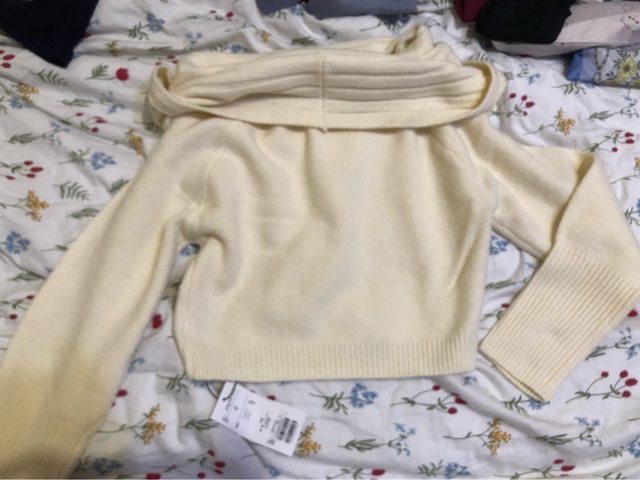 流行很久的寬領毛衣!左邊的肩膀有一個小開洞,