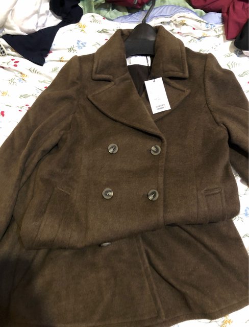 超級長又重的咖啡色大衣!!!!難怪福袋超重!!材質摸起來還不錯~