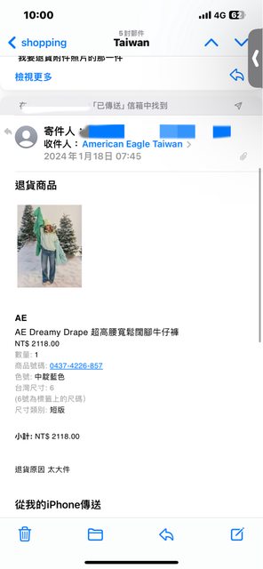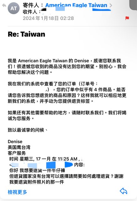 標題[抱怨] American eagle台灣官網退貨不易