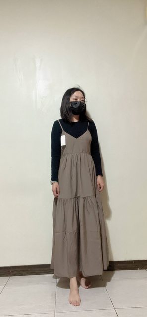 咖啡色細肩帶洋裝