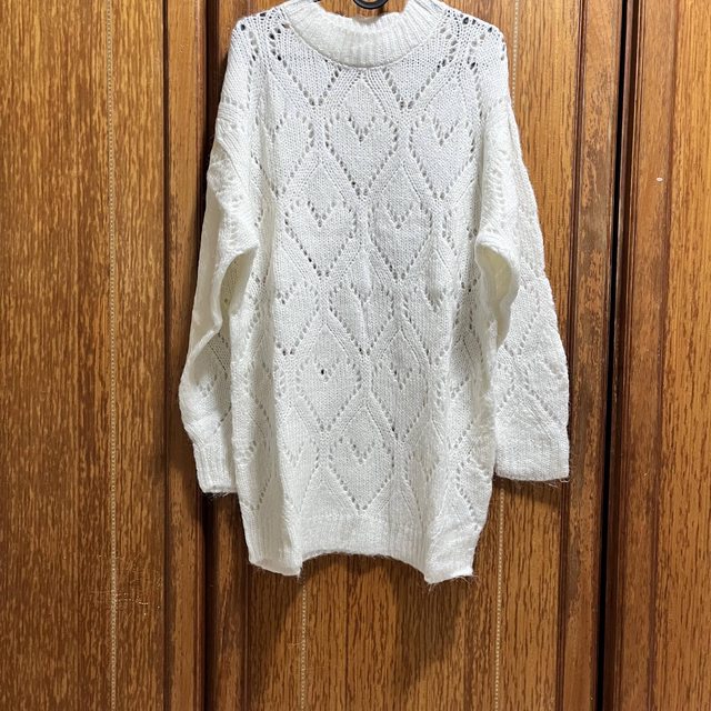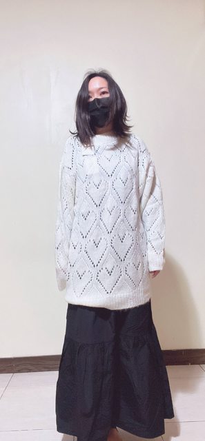 白色薄長愛心毛衣
