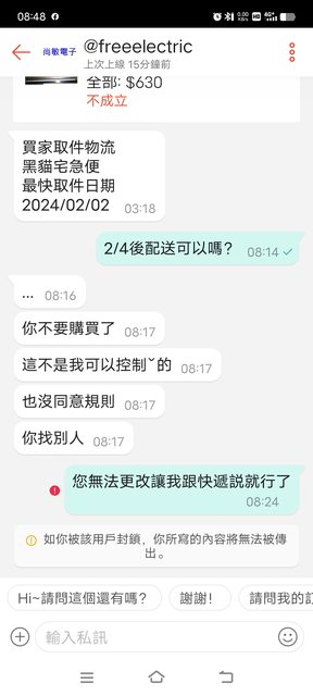 → ula0806: 你要求2/4以後配送就是指定日期了好嗎... 223.139.48.125 02/02 17:10