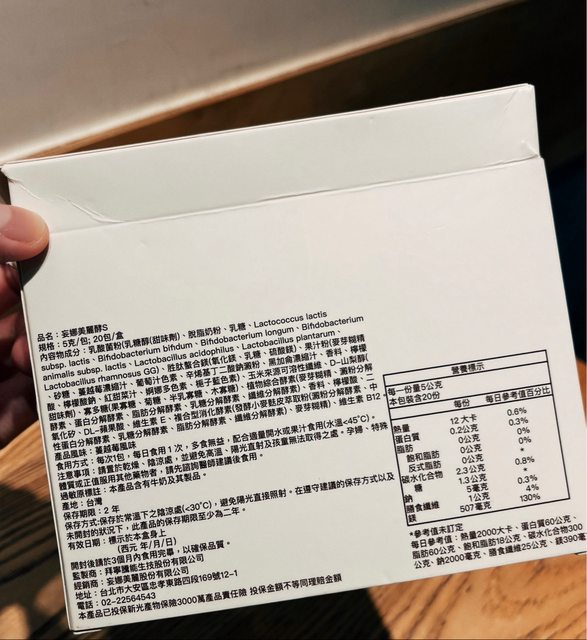 後面有標示產品成分:複合型消化酵素、維生素E&維生素B12、植物綜合酵素、玉米纖維