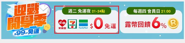 至於 週二 21-24點 0元免運 我一次也沒見過