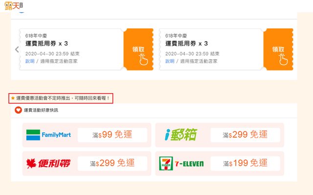 真的是不定時 所以須到底下網頁查看 運費活動好康快訊