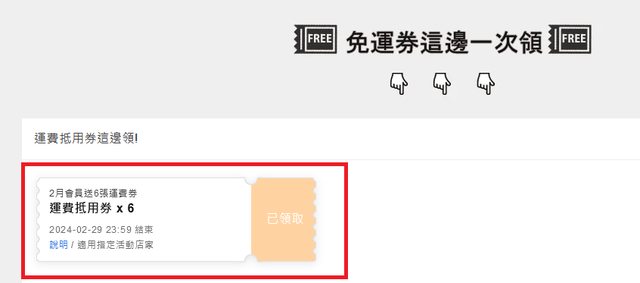 : "你有【6張免運券】未領取 來吧! 點我立即領"