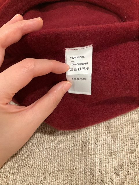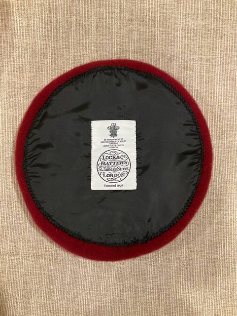 買了一頂深紅色貝蕾帽 要價55英鎊 無退稅