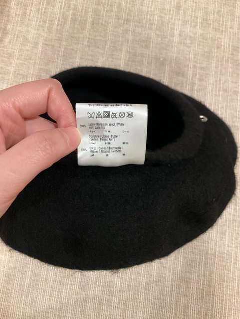 裡標寫法國製造 帽子本體100%羊毛 內裡100%棉