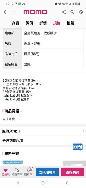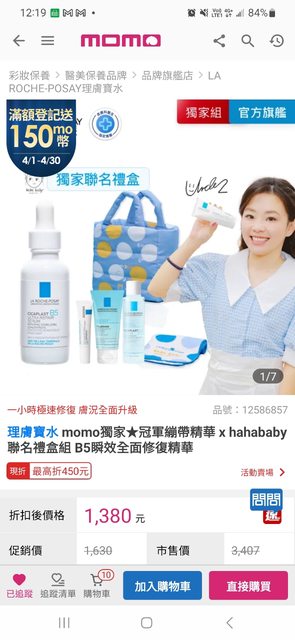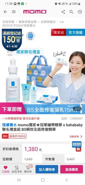 3/27趁理膚美妝購物節,購入多樣商品,其中一樣商品為hahababy聯名禮盒組 B5瞬效全