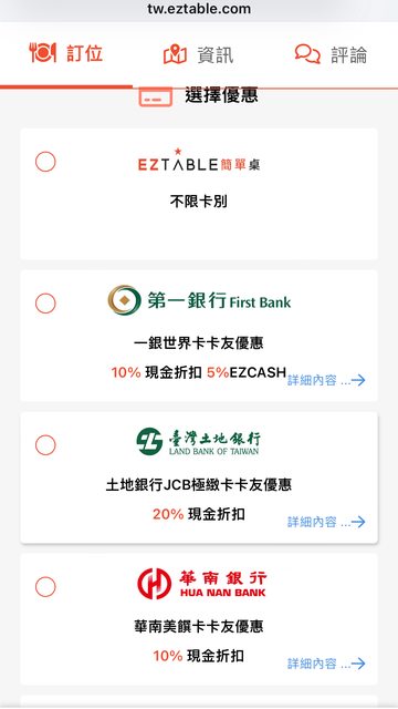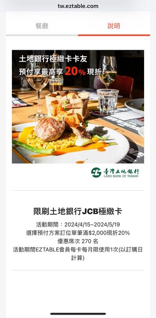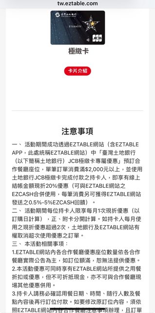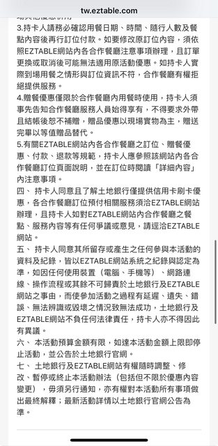 (土地銀行信用卡優惠很少了,結果eztable私下加規則,而沒辦法用)