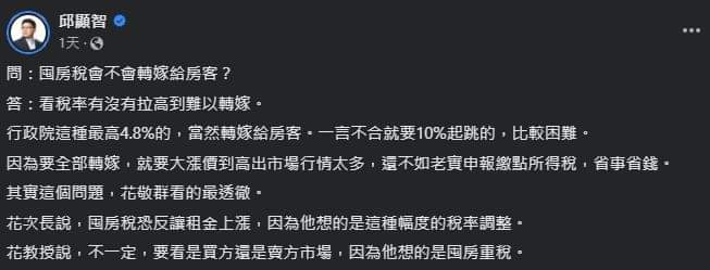 → nikepuppy: colinfeng 我就是指你 房東繳稅 可以 稅負轉嫁 07/08 22:32