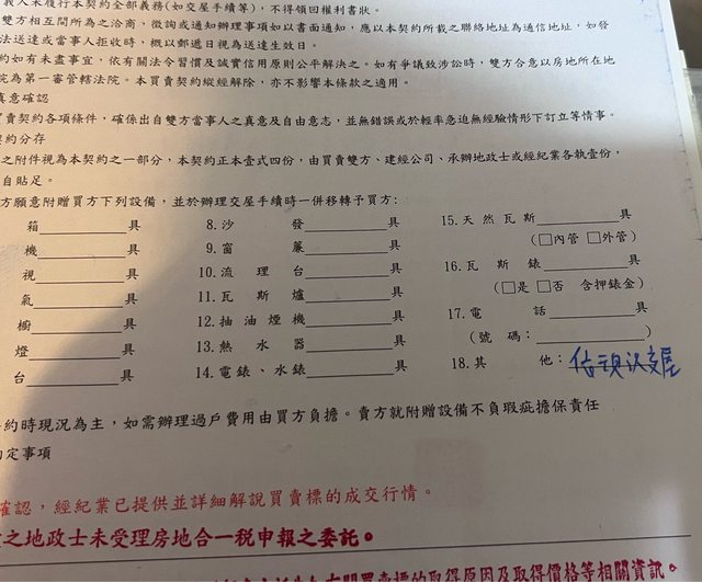 標題Re: [請益] 合約書贈與設備項目 寫依現況交屋的疑問