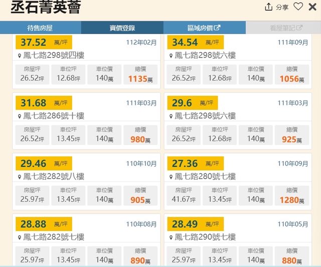 該物件鄰近實價登錄交易資訊