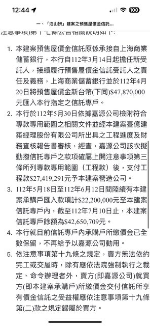 → batatas: 信託專戶之款項確屬上開注意事項第三條所列專款專用範圍07/31 14:44
