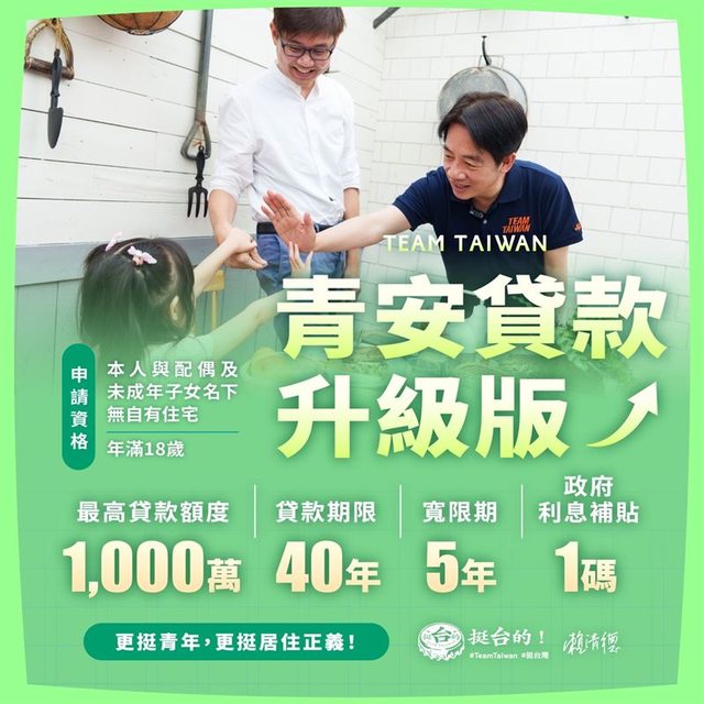 減輕年輕人買房負擔!青安貸款升級版今上路 賴清德一張圖報你知