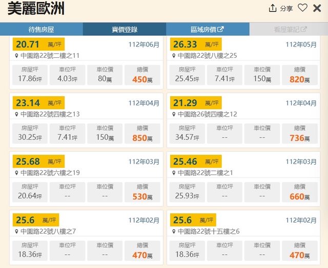 該物件鄰近實價登錄交易資訊