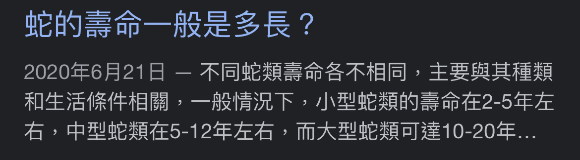 → student81122: 所以蛇的壽命只有兩年喔… 08/06 11:29