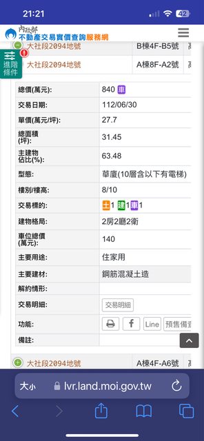 本物件兩年內上一筆實價登錄: