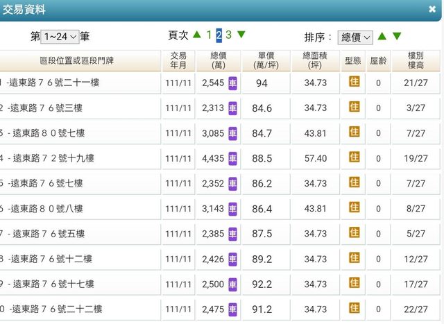 Elio2021: 之前最高是去年12月, 24樓, 24坪, 單價94.7萬/坪 08/15 02:35