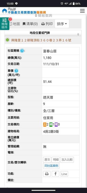 本物件附近地址實價登錄 : (依開頭說明文字查詢之)