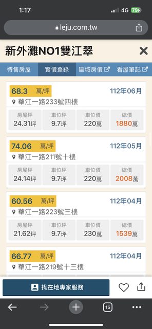 → Physerapb: 對了勝輝一邸又多一筆單價116萬了 09/05 20:10