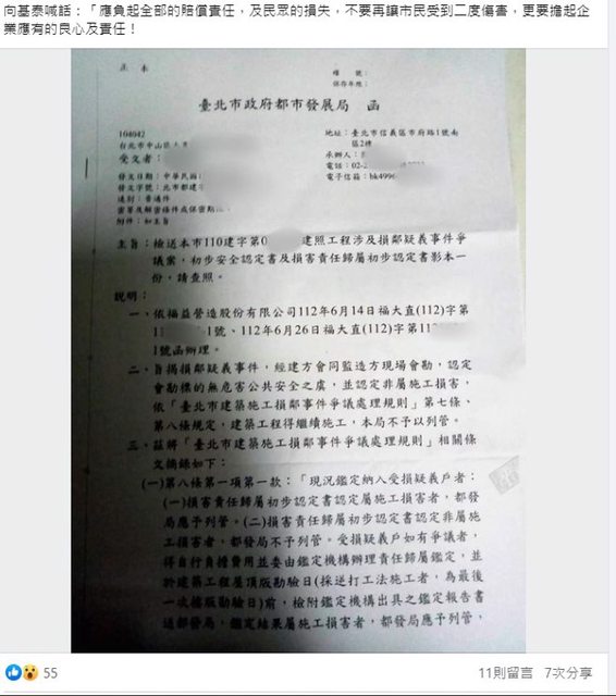 → javabird: 頂多拿違建等理由少賠一些些,但主要責任跑不掉的. 09/08 12:36