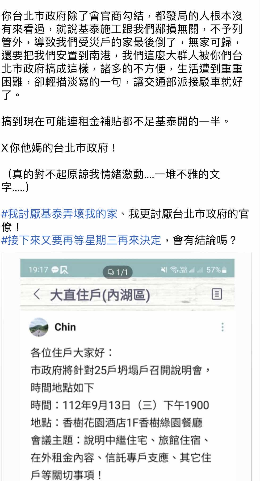 → junior020486: 然後受災戶有說要公辦都更了嗎?有說不跟基泰合建 09/12 20:22