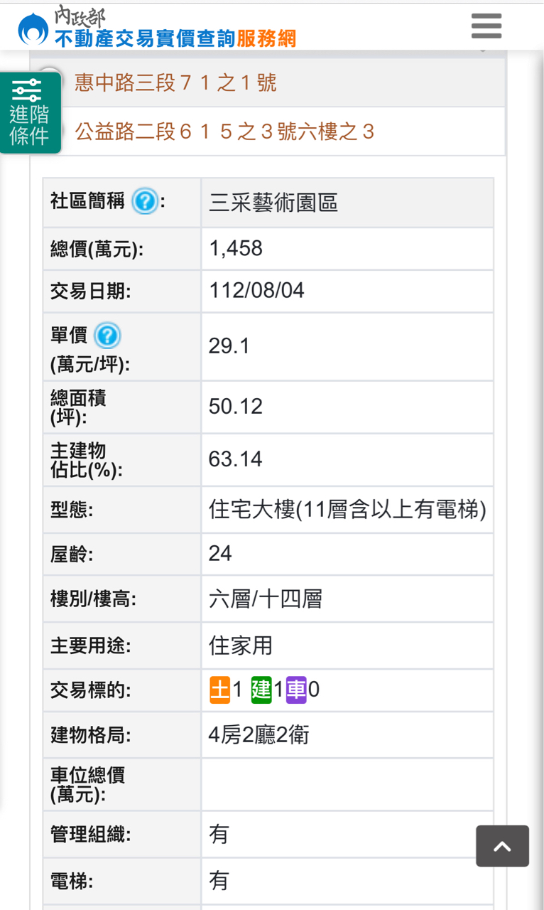 → PTTMAXQQ: 樂居只寫成交的月份但內政部實價登錄都有完整日期喔 09/12 21:23