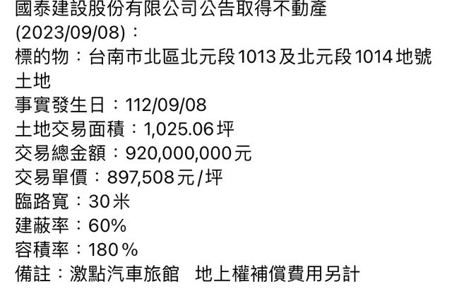 推 ttyy: 土地有成交是事實,地價就是這價格,推案就不可能多便宜 09/15 10:29