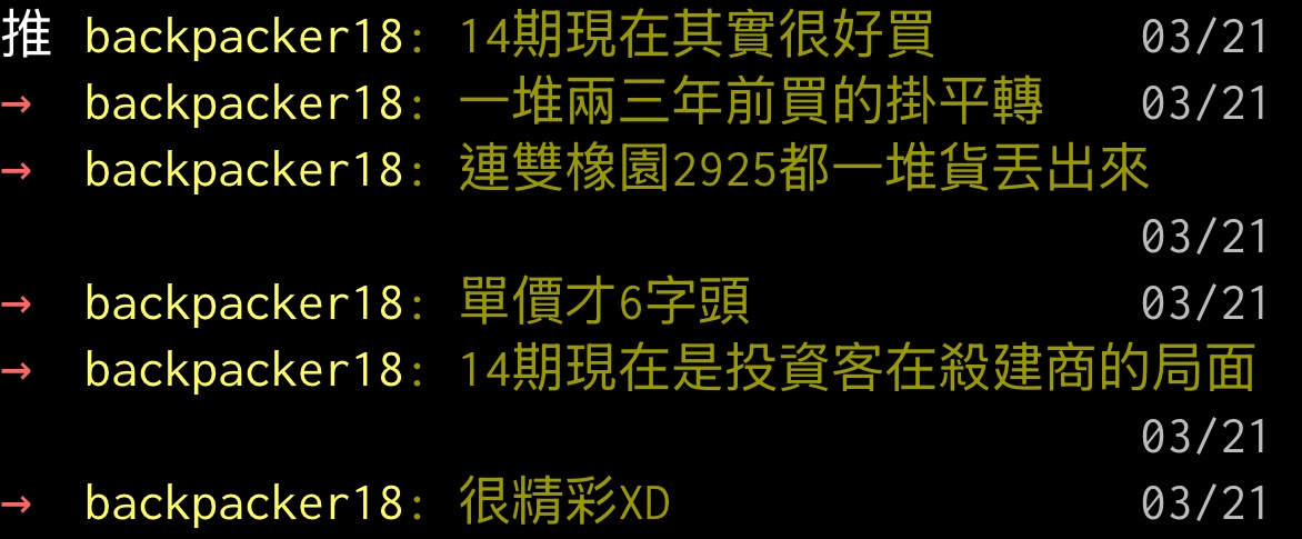 推 valkyrie: 112年6月買的要賠售?好險我老早就覺得14期是鬼地方了03/29 02:03