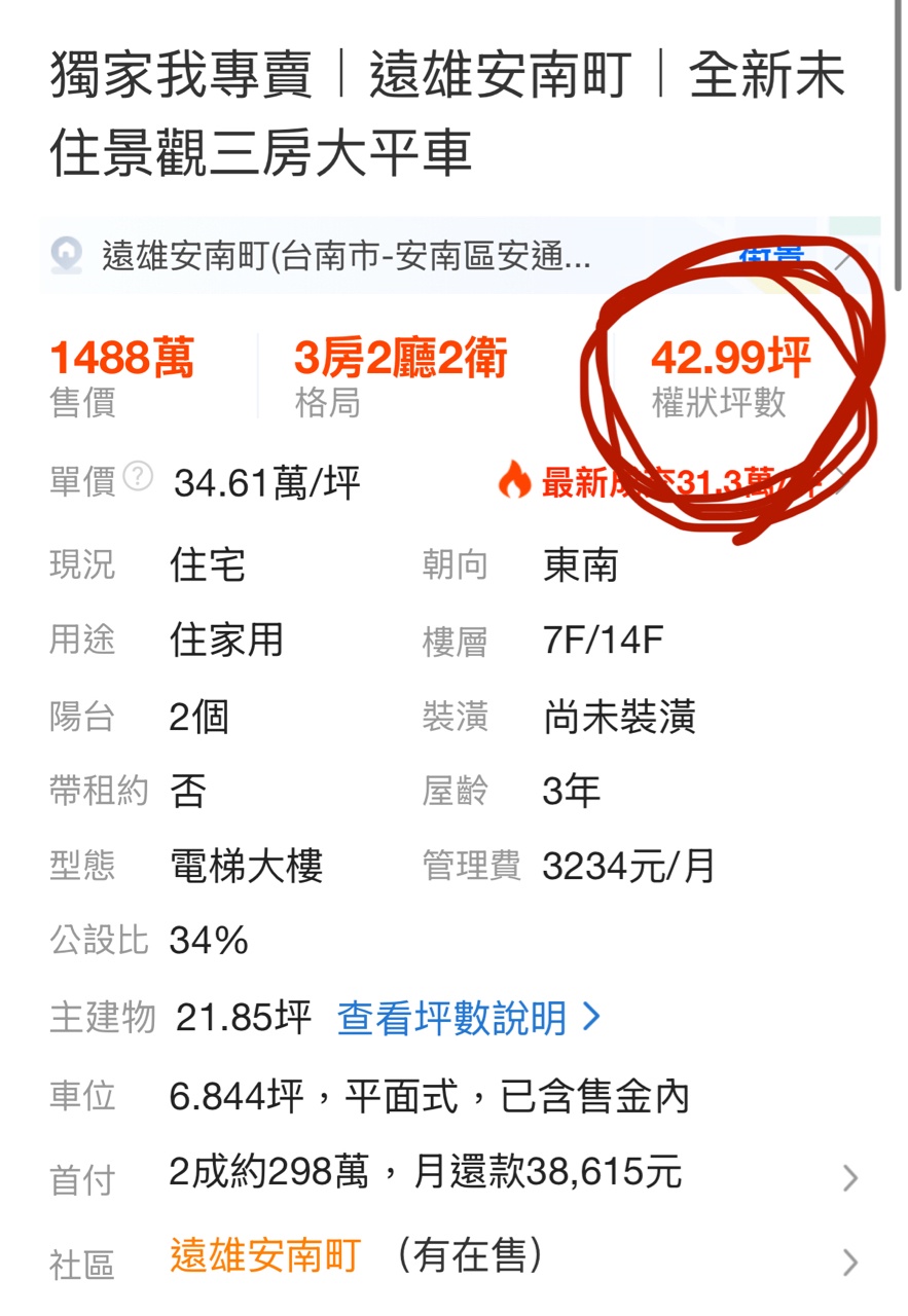 標題[賣/台南/安南] 商60旁遠雄安南町河景3房平車