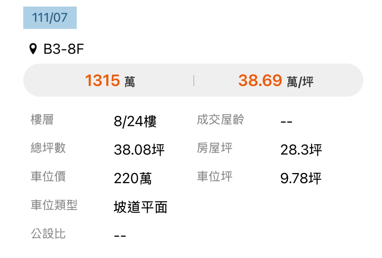 → BearJW: 仔細看2022年 A7買到38萬/坪 放了快三年到最後賣不掉 04/09 14:54