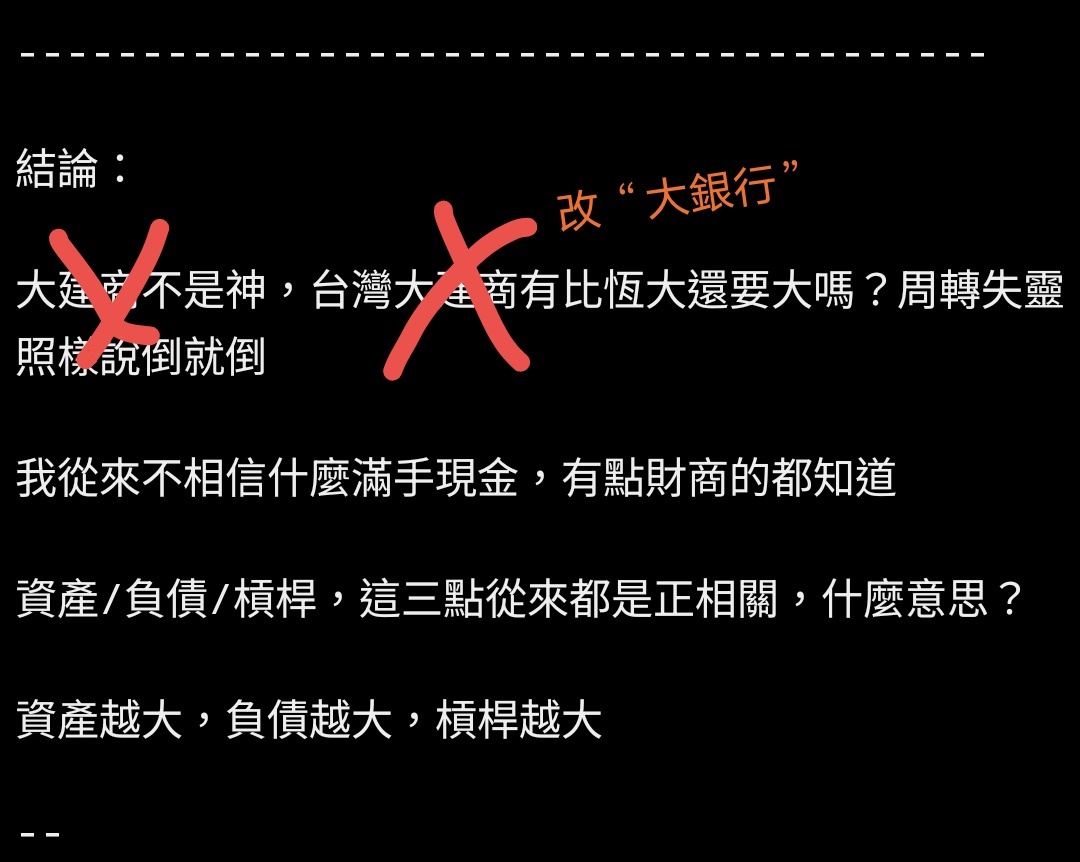 kusomanfcu: 建商出問題你要想的是銀行的存款能不能提出來 06/10 11:48