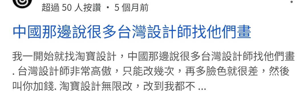推 iamok329: 淘寶出圖真的強,一堆設計師急惹 哈哈 06/28 13:24