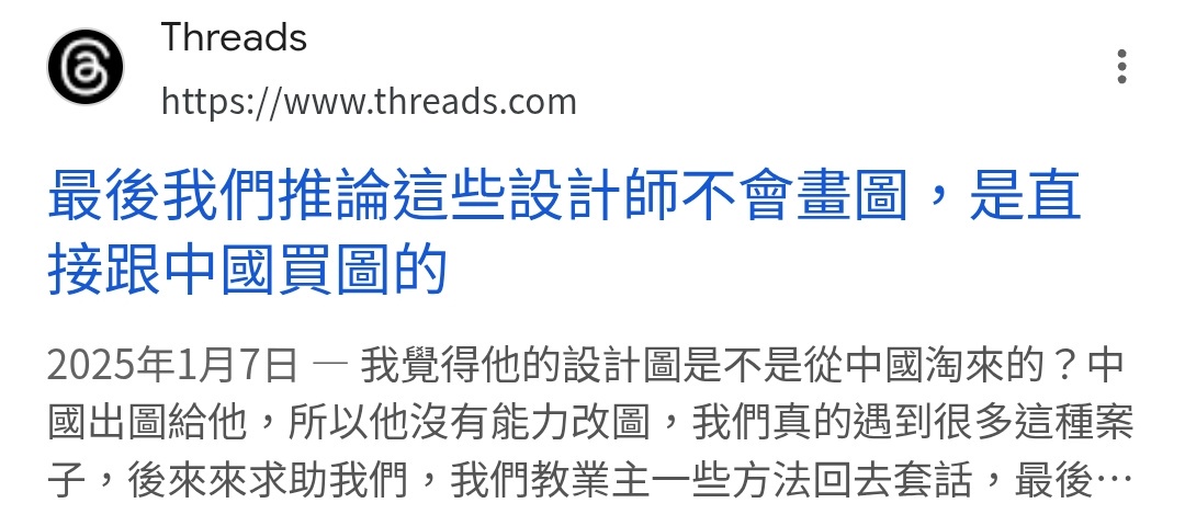 推 l98: 我只知道 Threads 上有設計師抱怨同行去淘寶買圖的啦06/28 10:21