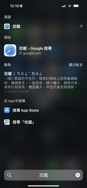 但新的ios按了搜尋按鍵後反而會有一些如辭典、搜尋app store、搜尋地圖等建議