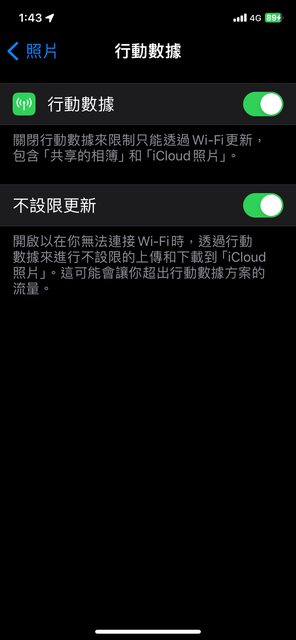 是一個月前的照片就沒辦法讀取(如圖)確定行動數據是有網路的,相簿設定那裡也有開啟