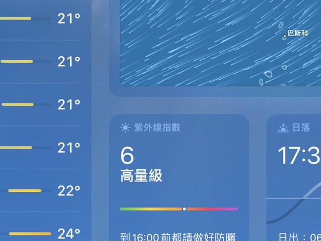 條上的小白點,則是此刻溫度的區間位置。因此,當顏色條愈長,代表那天的溫差愈大;顏